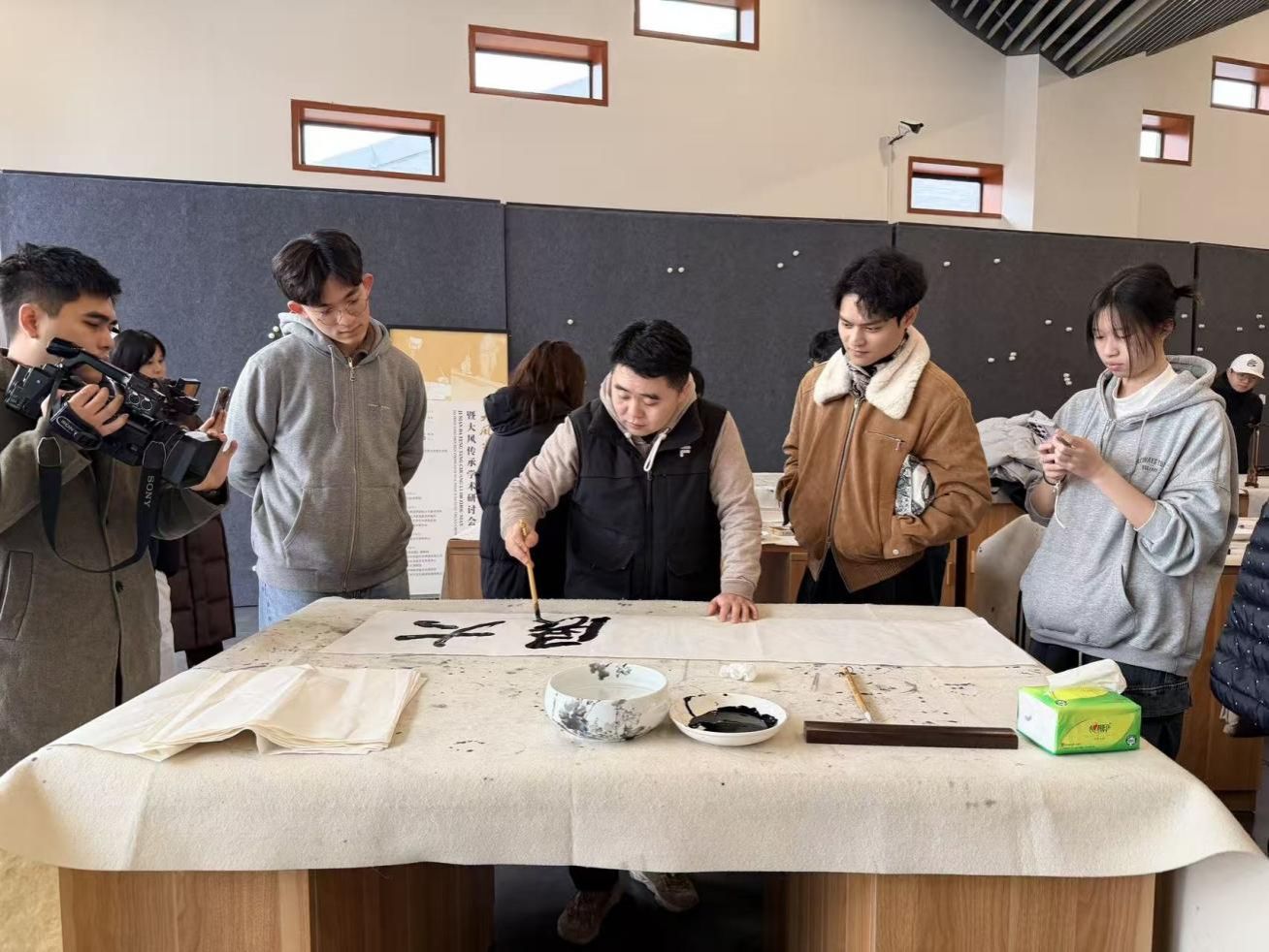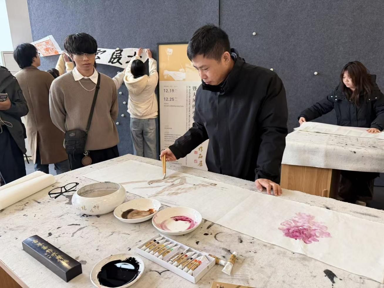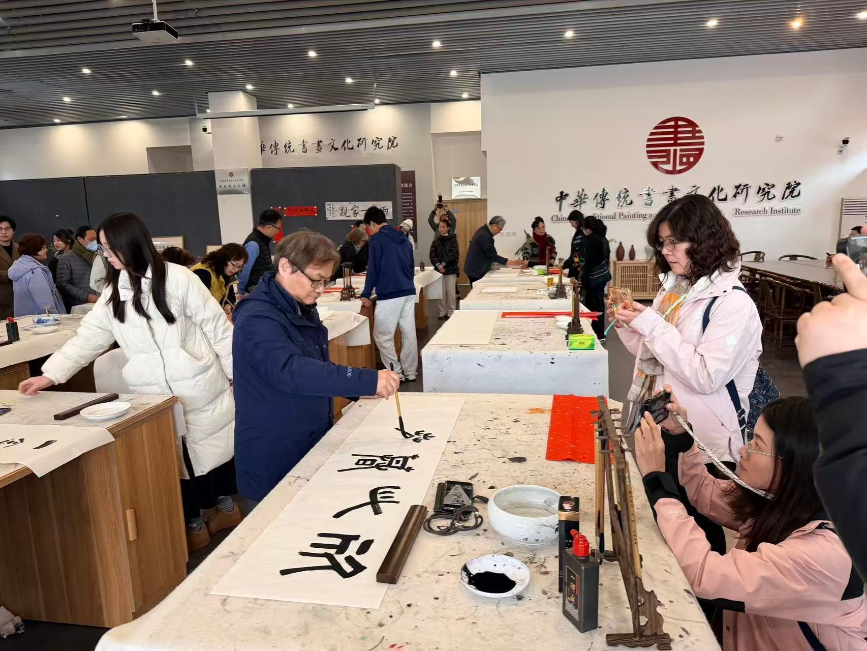 中华传统书画文化研究院 1月19日上午,“台湾高校师生四川交流营”一行30人,走进研究院开展交流学习活动,通过参观展览、技法切磋、创作体验等形式,沉浸式感受巴蜀书画艺术魅力,共续两岸文化血脉。